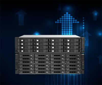 Séries 12+ baies, SAS/NVMe, ZFS, déduplication, réplication distante, partage bloc iSCSI.